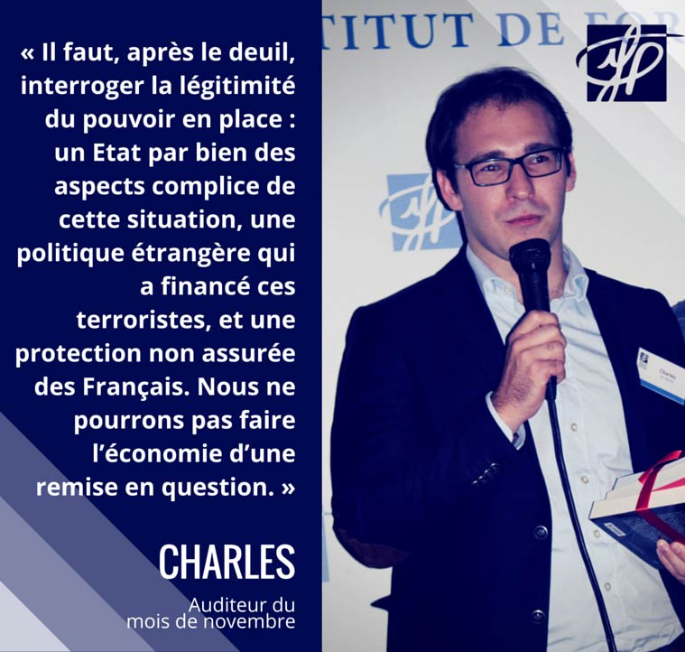 Alors que la sphère politico-médiatique reste timorée après les attaques du 13 novembre, certains jeunes sont prêts. Même quand l’incertitude et la peur gagnent l’opinion, ils prennent la parole. Charles est l’un d’entre eux.